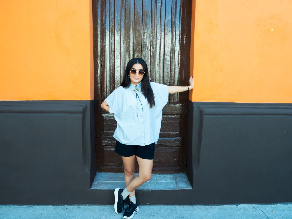 Atómico, línea base de la marca, que integra desde playeras, camisas, vestidos y accesorios, al menos de inicio, con formas asimétricas y juego de textiles para crear piezas divertidas, arriesgadas y libres.